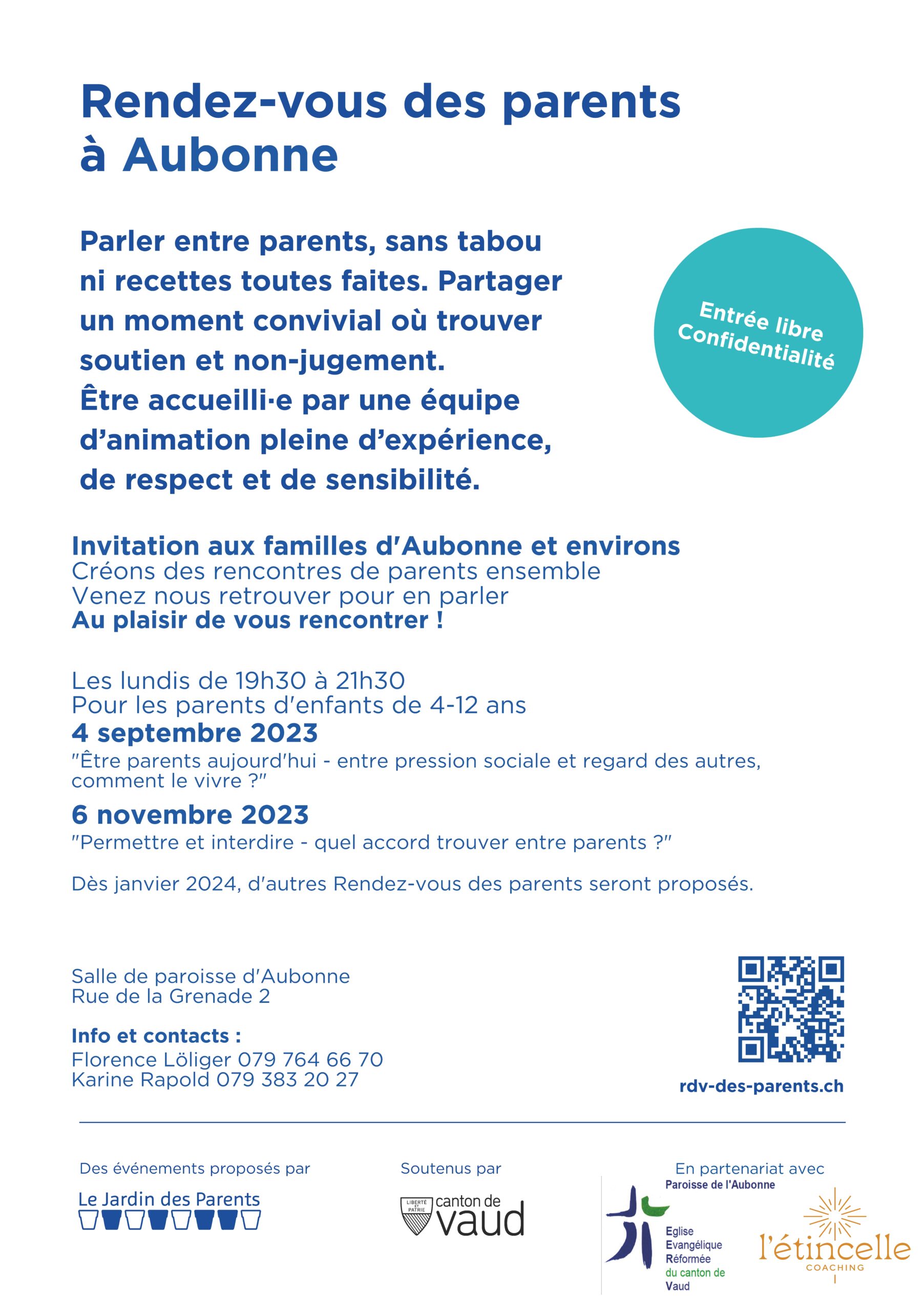 L’équipe des Rendez-vous des parents est heureuse de vous accueillir le lundi 4 septembre à 19h30 pour la reprise de ces moments pour vous les parents.