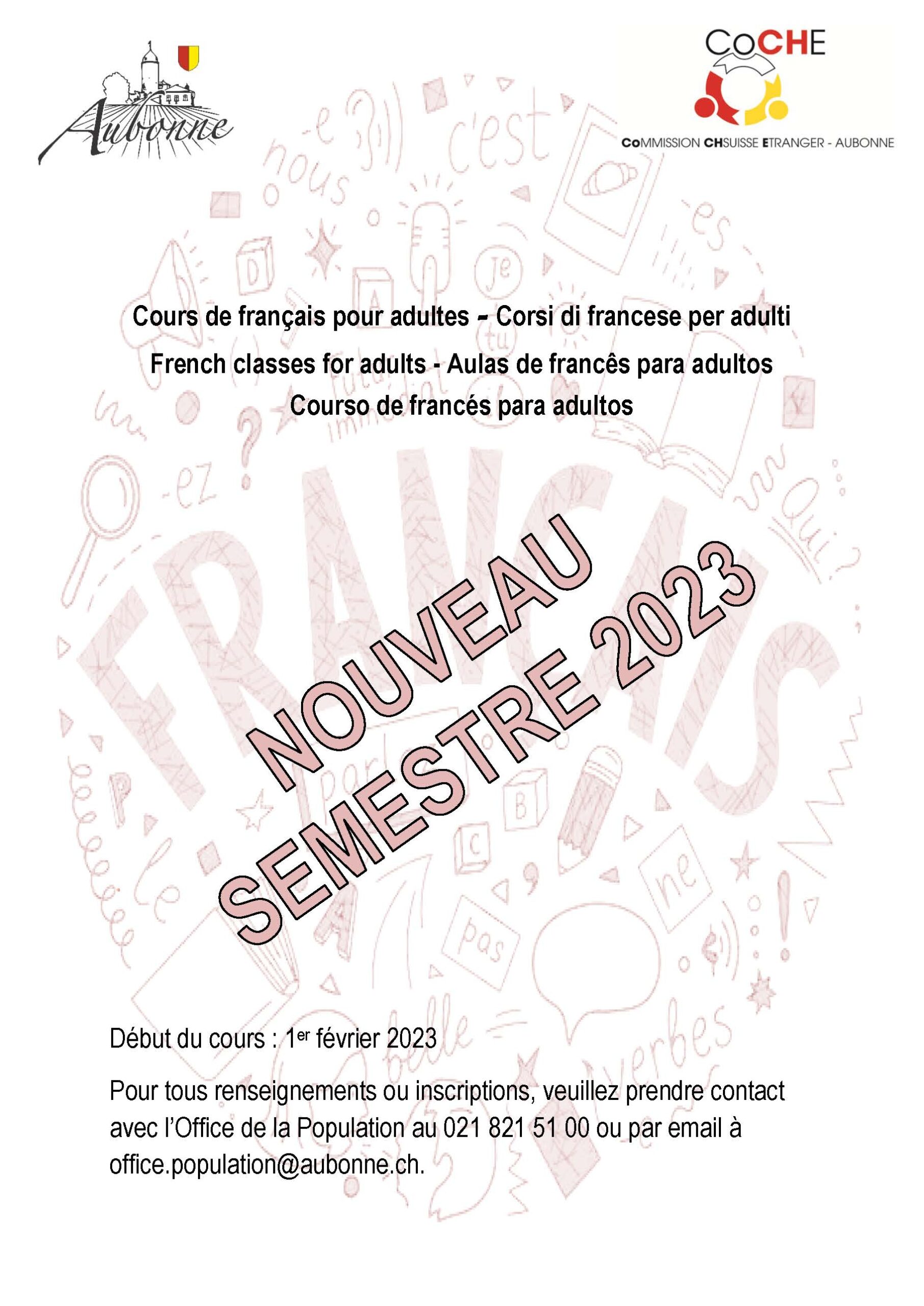 Cours de français pour adultes – Corsi di francese per adulti – French classes for adults – Aulas de francês para adultos – Courso de francés para adultos
