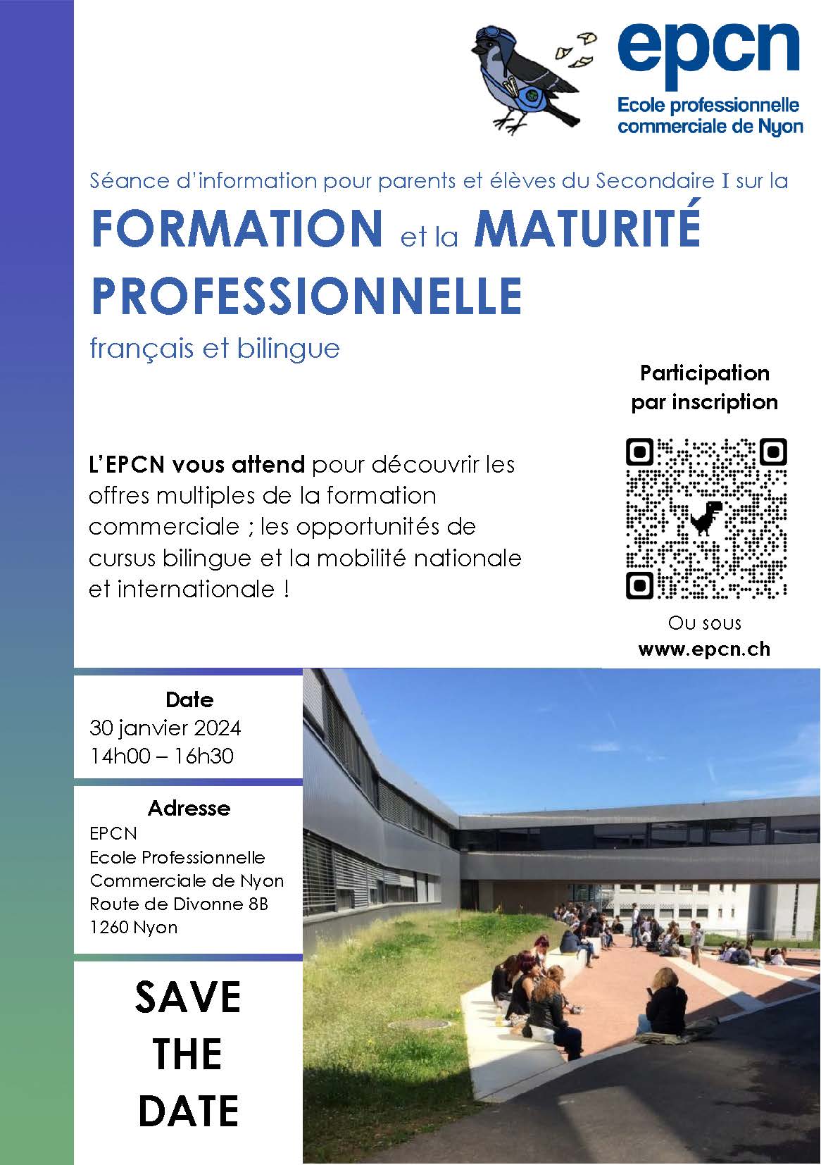Formation et maturité professionnelle: séance d’information à l’École professionnelle commerciale de Nyon