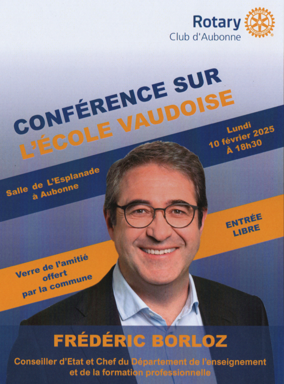 Lundi 10 février 2025 – Conférence à Aubonne sur l’École vaudoise par M. Frédéric Borloz, chef du DEF