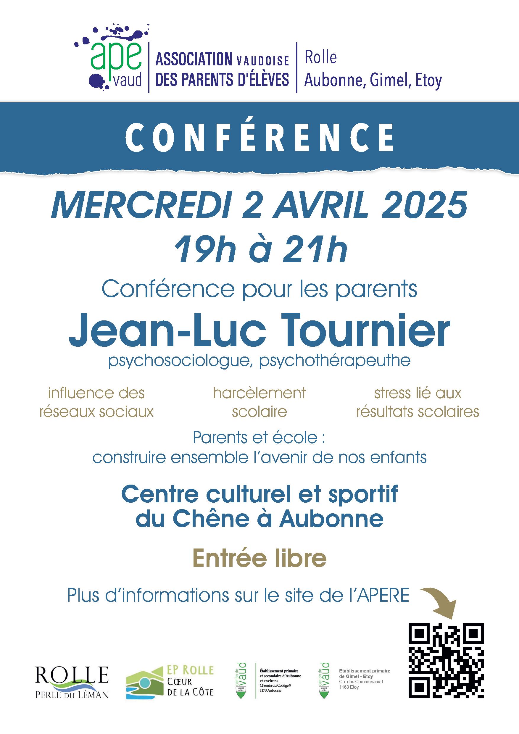 Rendez-vous à ne pas rater! Conférence pour les parents le 02 avril à 19h à Aubonne